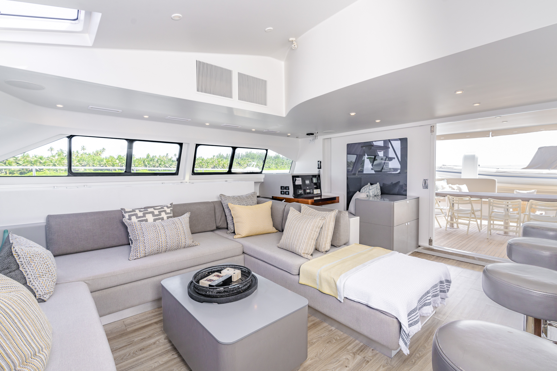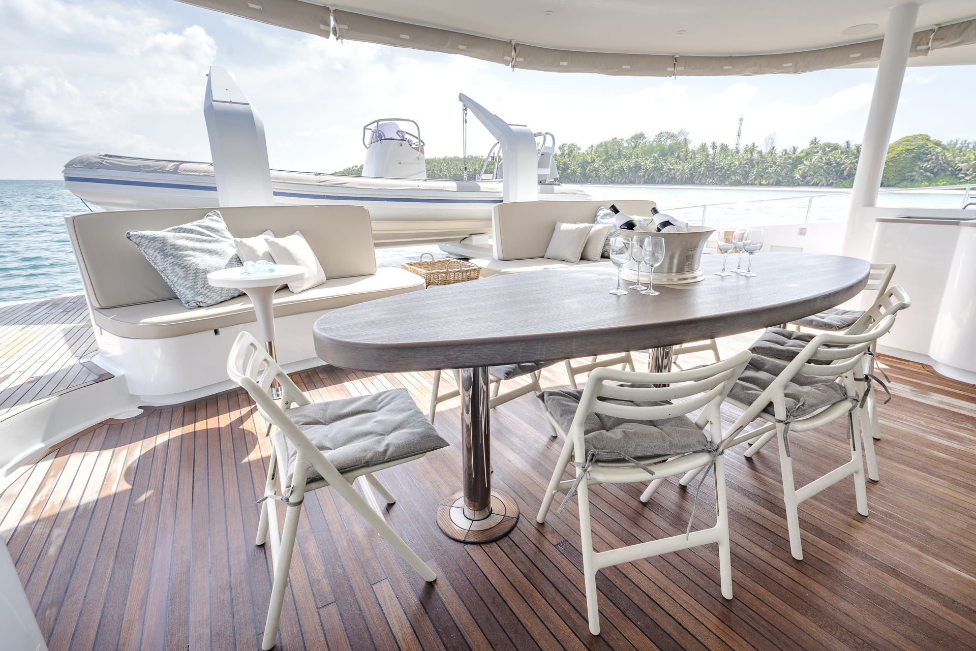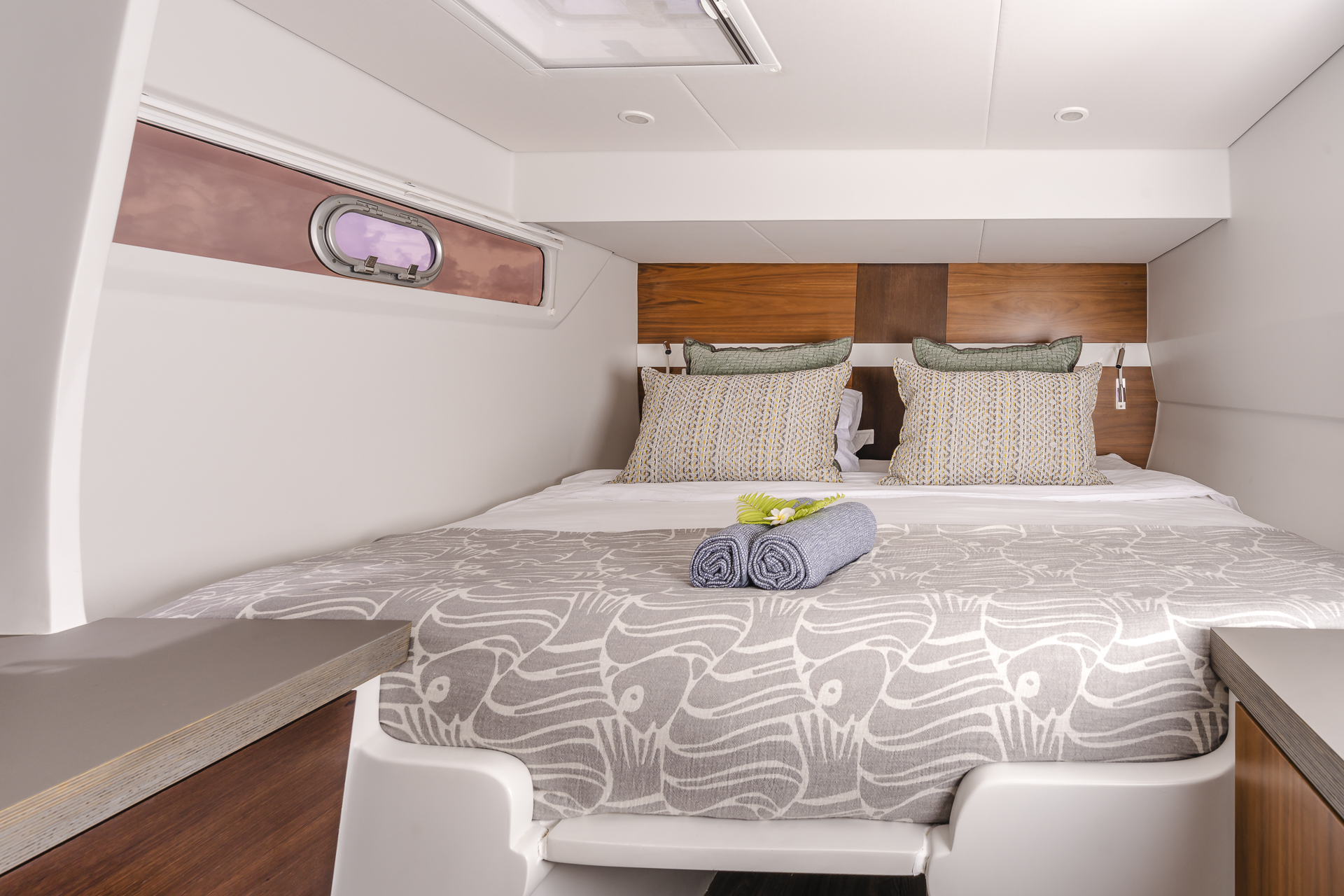 Streamlined lines and a flowing, contemporary interior complete with modern appliances blend seamlessly together to create a remarkable interior. Boasting four luxuriously appointed suites that can feature one king-size bed or twin single beds, all with spacious en-suite bathrooms, Quo Vadis can sleep up to eight adults. There are two separately appointed forward cabins for accommodating the four crew members that accompany the boat.